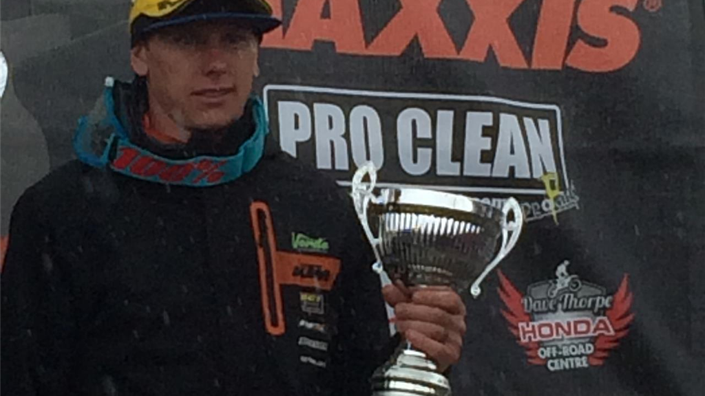 Nicholls up front to finish first place in Moto 1. Brad soon chased down
