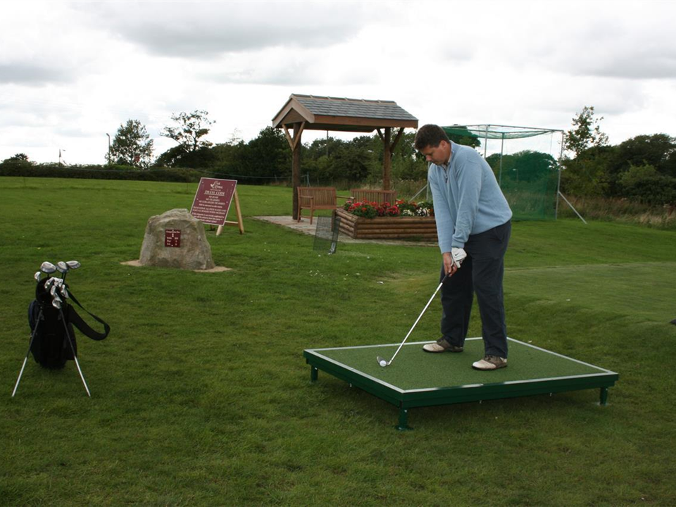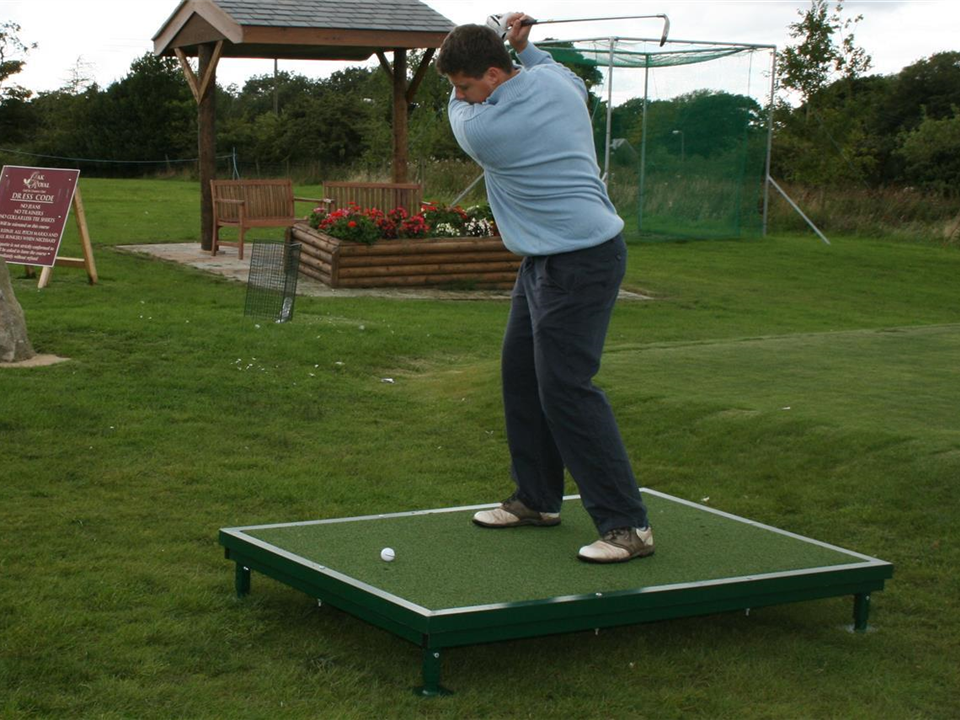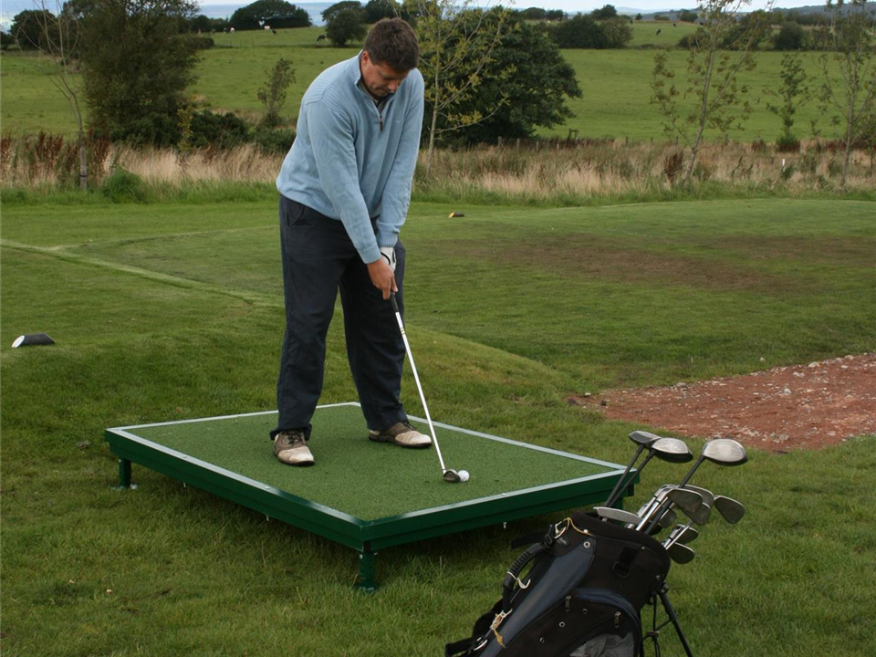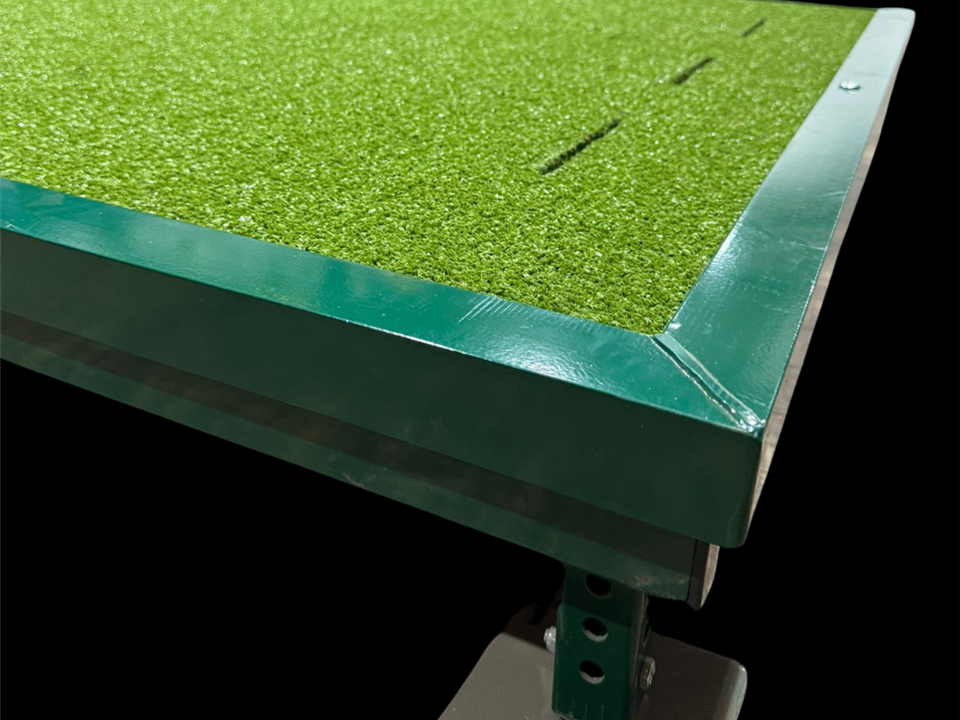 The Verde Tee Frame consists of a raised steel frame with a secure but replaceable *** Three Star Verde Golf Mat. The mat is a top quality Wilton woven synthetic grass with integral shock pad system seated on a treated exterior quality plywood base. The Driving Mat and base are securely bolted into the frame with a picture frame type fixing. Fully adjustable telescopic legs permit accurate levelling. All steel surfaces are fully powder coasted in green. Six replaceable rubber grommets are inserted to grip standard wooded/plastic tee pegs.